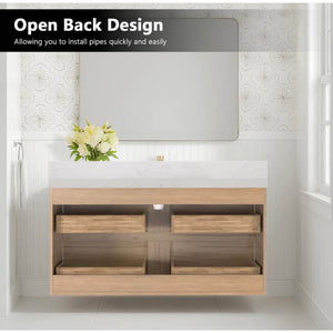 • Hassle-Free Setup: Ready to install right out of the box! Simply mount the cabinet, attach the countertop & basin, and enjoy your floating vanity